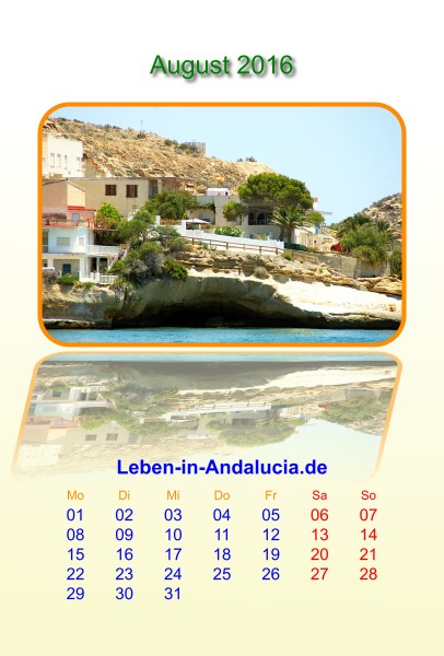 Für den Fotokalender habe ich meine Bilder nach Datum sortiert und entsprechend auch in die Kalenderblätter eingefügt. Er zeigt also wirklich das ganze Jahr in Bildern. Lediglich die berühmte Semana Santa – die Osterwoche – kann ich euch nicht präsentieren. Dieses Jahr waren wir alle krank und haben die herrlichen Umzüge nicht mitbekommen. Aber im nächsten Jahr werde ich jeder Menge Bilder machen, die dann in den nächsten “Fotokalender Andalusien 2017” kommen :)